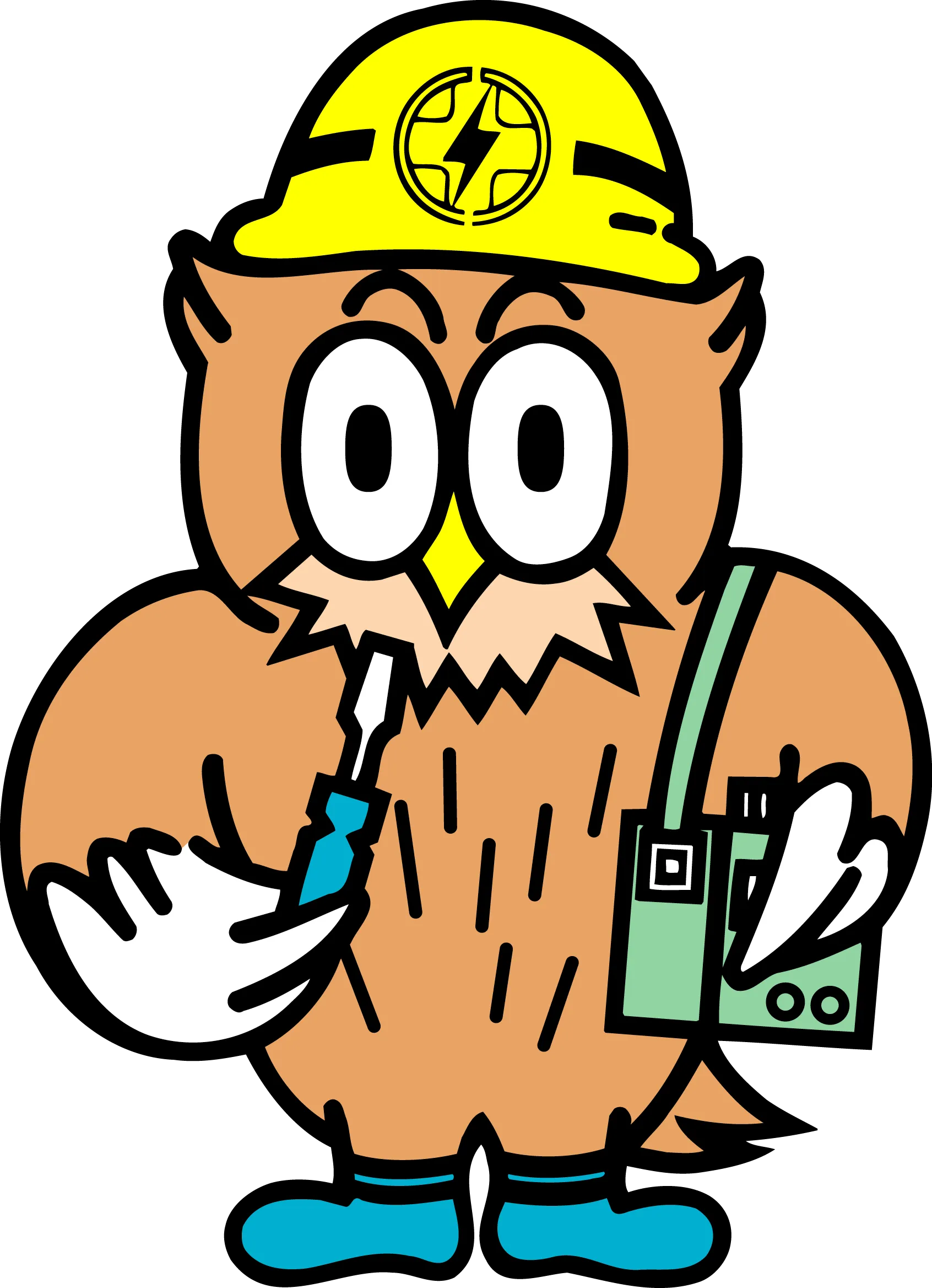 平成元年8月に誕生しました。ふくろうは森の守り神、知恵者としてのイメージがあるほか、夜間に大きく見開いた目は、24時間体制で電気の安全を守る当協会の業務にぴったり。